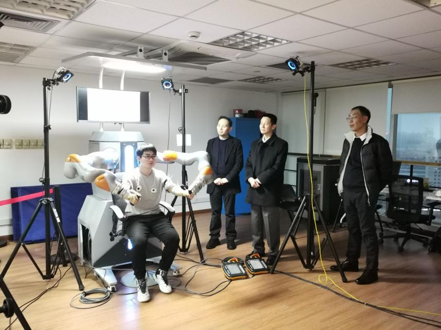 接着,市领导一行参观了东升国际正在建设的机器人智能化共性技术平台,该平台用于研究机器人智能感知、智能操作以及云机器人技术服务等。智能化部宋韬详细介绍了双臂机器人、康复机器人等其他机器人设备及操作系统。
